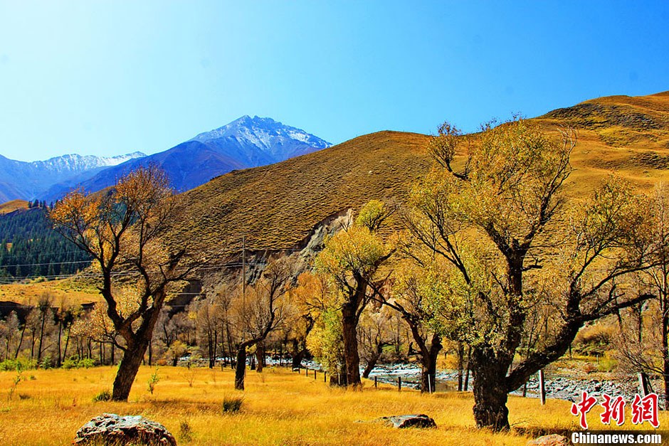 金秋十月,走进位于祁连山北麓,甘肃河西走廊中段的肃南裕固族自治县,由金黄、红、白和深紫勾勒出的斑斓秋色如油画,眼前的每一道山麓都被点缀得层峦叠嶂,气势恢弘,美不胜收。肃南草原被誉为“中国最美六大草原”之一。武雪峰 摄