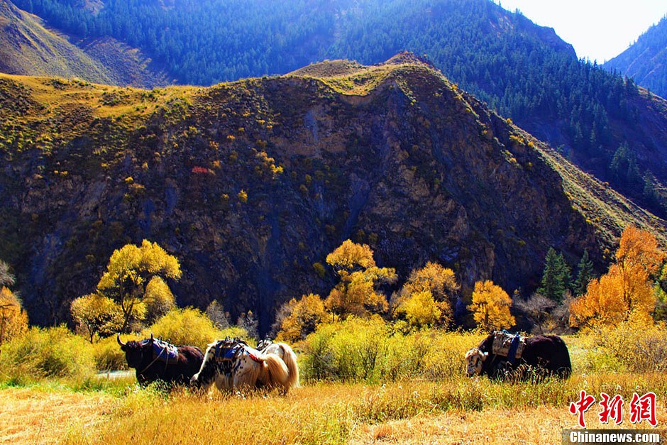 金秋十月,走进位于祁连山北麓,甘肃河西走廊中段的肃南裕固族自治县,由金黄、红、白和深紫勾勒出的斑斓秋色如油画,眼前的每一道山麓都被点缀得层峦叠嶂,气势恢弘,美不胜收。肃南草原被誉为“中国最美六大草原”之一。武雪峰 摄