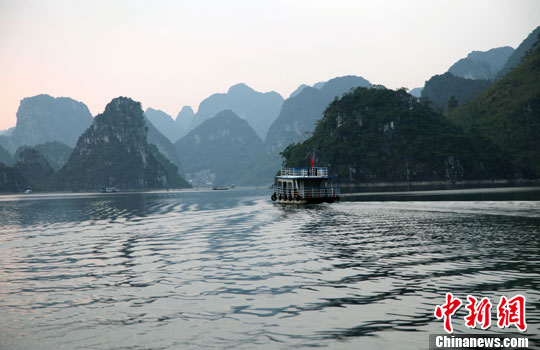 10月9日,游客在享有“中国下龙湾”美称的广西南宁市上林县大龙湖景区参观。中新社发 杨志雄 摄