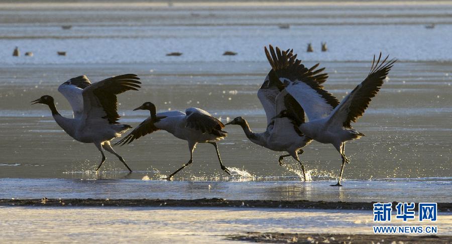 “雪域神鸟” 黑颈鹤高原嬉戏
