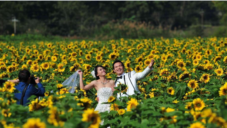 11月28日,游客在田间观赏葵花。近日,广西德保县曼贝侬小西湖景区的千亩油葵进入花期,引来众多游客赏花。 新华社记者 黄孝邦 摄