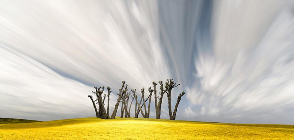 华盛顿州帕卢斯草原地处美国西北部,幅员辽阔,人迹罕至。摄影师丽莎?伍德驾车行驶在泥泞不堪的小路上,用相机记录下这片牧场的美景。更值得一提的是,丽莎最终向观众呈现的每一张照片都是由30张照片“拼凑”而成,亮点各不相同。例如,有的呈现出山顶、有的呈现出部分天空、有的则是孤立的植物。所有的照片都收录在她的系列作品《牧场艺术》(Art of Farmland)中。