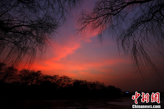 北京城冬日晚霞醉人