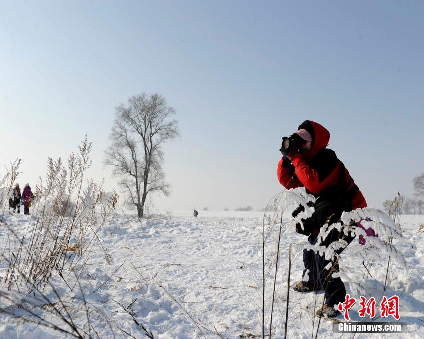 1月22日,吉林市雾凇岛出现雾凇景观,银妆素裹的冰雪世界吸引大批游客登岛观光。张瑶 摄