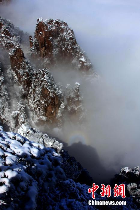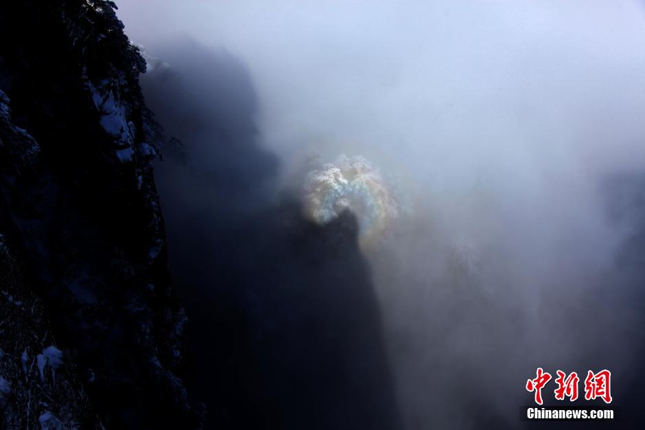 安徽黄山雪后现美丽“佛光”