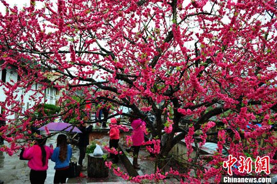 初春二月,被誉为“广东最美的农村”韶关乐昌九峰镇的桃花、李花、油菜花已开始争相怒放,处处呈现春色盎然的景象,成为广东春天踏青赏花旅游的好地方。走进九峰山,犹如走进了花的海洋。目前,是当地观赏桃花的最佳时期。6日,九峰镇举办了桃花节,吸引了众多游客前往赏花。图为游客正在观赏桃花。中新社发 梁永强 摄