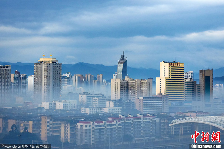 2014年3月13日,福建省福州市,清晨六点,一场大雾弥漫榕城,呈现大美景观。图片来源:CFP视觉中国