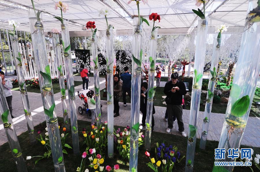 游客在上海鲜花港观赏第八届中国花卉博览会获得设计特别奖的作品(3月23日摄)。 3月24日,上海鲜花港第十届郁金香花展进入第三天展期。据主办方介绍,郁金香花展举办十年来,已接待游客超200万人次。今年花展期间,鲜花港将举办第20届上海国际模特大赛、第十届“聚焦上海鲜花港”摄影大赛和“荷兰日“庆典等活动。新华社发(闵才弟 摄)