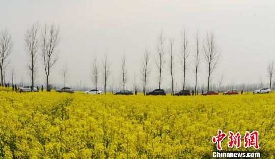 3月22日,油菜花地边上自驾出游的汽车排起了长队。中新社发 杨华峰 摄