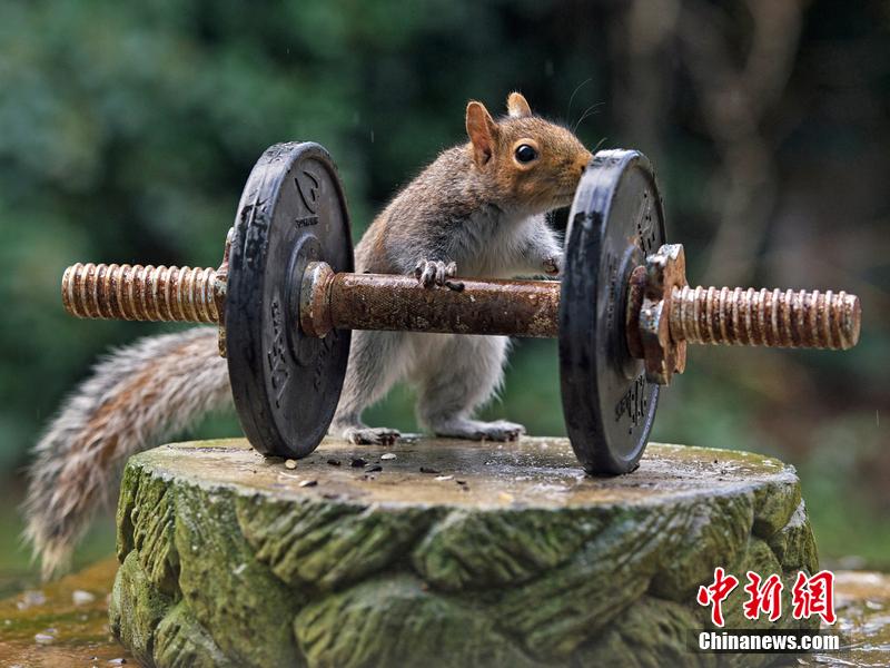 3月26日报道,英国特丁顿,一只狂热爱体育的小松鼠在举重。在观察了迷你版哑铃几秒后,小松鼠决定试一下自己的肌肉,像模像样地开始举重,不可思议的一幕发生了,小松鼠真的将哑铃举了起来,专业程度不亚于专业举重选手。但有些照片无法让人相信,很可能是摄影师的摆拍,事实证明的确如此,摄影师Max Ellis将哑铃连上绳子,在松鼠靠近的时候慢慢将哑铃举起,看上去就像是小松鼠自己举起来的一样。