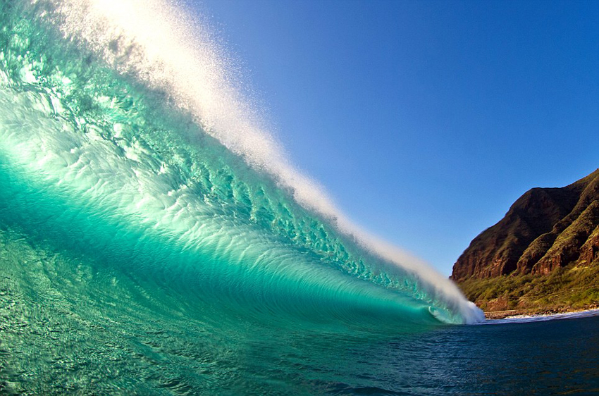 拍摄这组图片时,里特尔用的是重达4.5千克的尼康D300相机,该相机拥有一个超宽角的鱼眼镜头,能够拍到全景照片。为防止相机被海浪卷走,他将相机与皮带链接至脚踝。为了使画面达到最佳效果,里特尔还带了闪光灯。他穿着脚蹼,滑行在海面。为了不让起伏的浪潮影响拍摄,他冲浪的高度达到了15英尺。