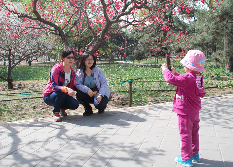 萌宝为妈妈拍照。(中工网记者杨灵 摄)