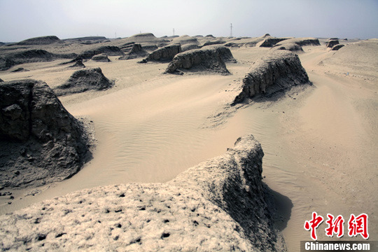 4月15日,青海格尔木至东台吉乃尔盐湖途中,经过一片被誉为“魔鬼城”的雅丹地貌,场面奇特壮观。中新社发 孙自法 摄