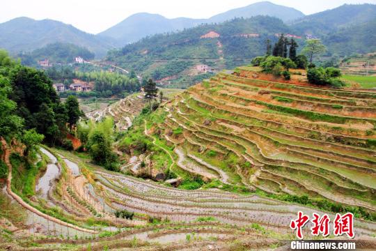5月4日,位于江西省遂川县左安镇山区梯田色彩斑斓,景美如画。李建平 摄