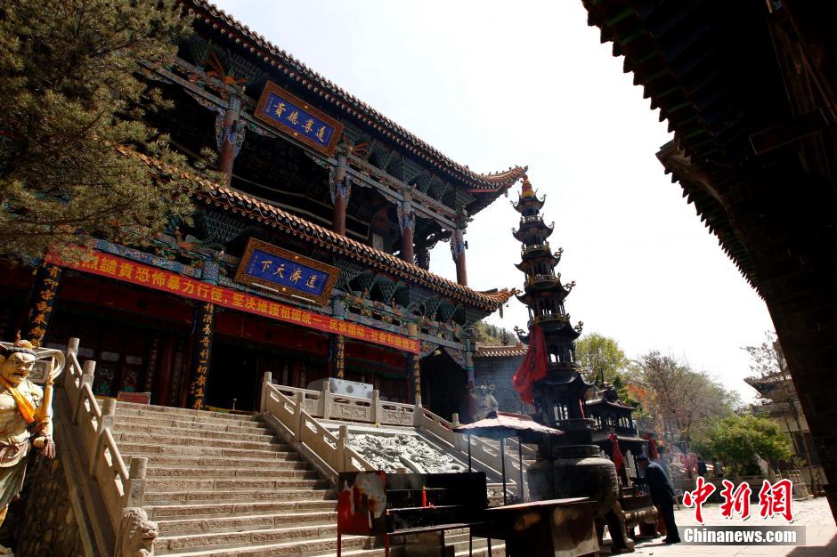 5月8日,一位信众在北禅寺内上香。北禅寺是青海境内最早的宗教建筑,位于西宁北山,初建于北魏明帝时期,距今已有一千八百多年。整个建筑背倚北山,基本上是依山腰中的红砂岩天然断层由西向东依次而建,上载危岩,下临深谷,楼阁悬立,结构奇巧。栈道回廊将殿宇楼阁与洞穴相连,使殿中有洞,洞内套洞,洞中塑有佛道诸神像,素有“九窟十八洞”之称,为中国第二大悬空寺。北禅寺早先为佛教寺庙,后成为道教寺庙。北禅寺内现保留有部分从隋唐至明清的壁画,艺术价值很高,曾有“西平莫高窟”之称。由于年代久远,风雨不断洗礼,山体已很不稳定,绝壁出现多条裂缝,大部分洞窟岌岌可危,无法开放。中新社发 胡友军 摄