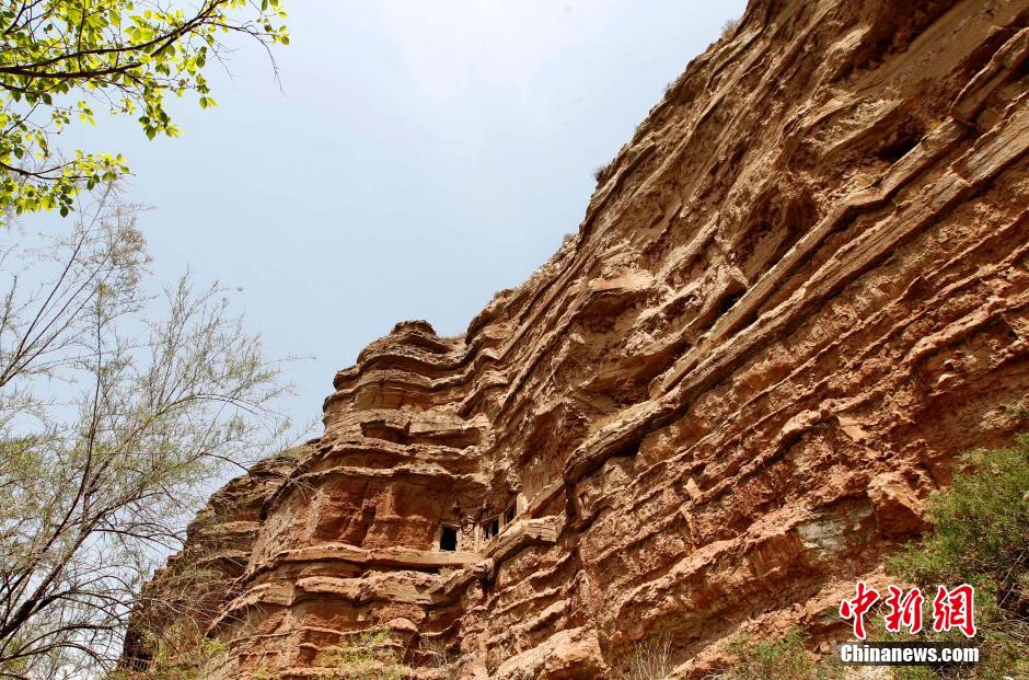 北禅寺是青海境内最早的宗教建筑,位于西宁北山,初建于北魏明帝时期,距今已有一千八百多年。整个建筑背倚北山,基本上是依山腰中的红砂岩天然断层由西向东依次而建,上载危岩,下临深谷,楼阁悬立,结构奇巧。栈道回廊将殿宇楼阁与洞穴相连,使殿中有洞,洞内套洞,洞中塑有佛道诸神像,素有“九窟十八洞”之称,为中国第二大悬空寺。北禅寺早先为佛教寺庙,后成为道教寺庙。北禅寺内现保留有部分从隋唐至明清的壁画,艺术价值很高,曾有“西平莫高窟”之称。图为北禅寺建在岩壁上的楼阁。中新社发 胡友军 摄
