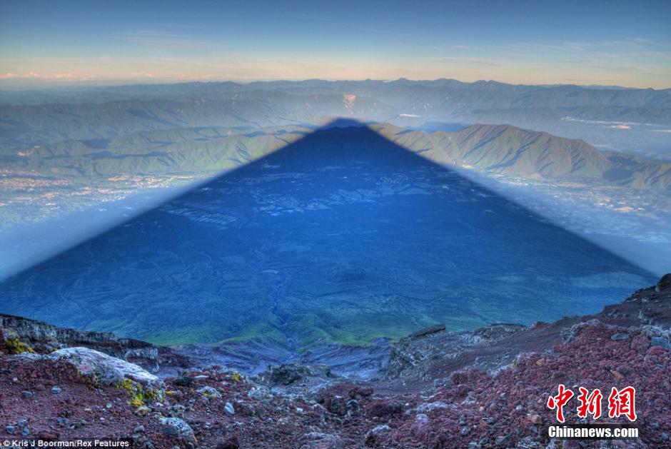 据英国《每日邮报》8月6日报道,一名英国摄影师日前在日本拍下富士山的震撼照片,在清晨日出时分,富士山投下长达15英里(约24公里)的巨大阴影。来自英国肯特郡的摄影师布尔曼(Kris Boorman)在日本旅游时,在清晨5点左右日出时分,站在富士山山顶,拍下了这一组震撼照片。(网页截图)
