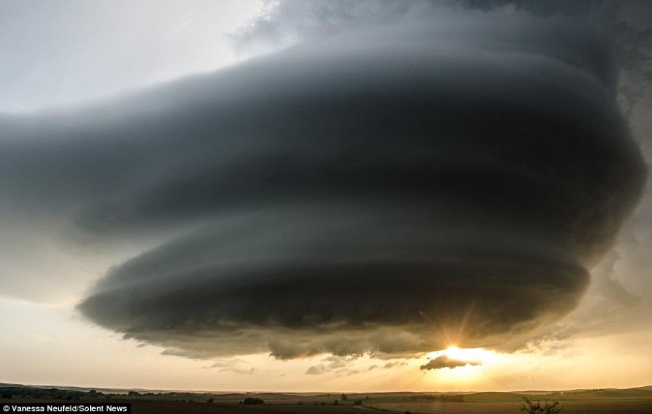 这组令人惊讶的照片,显示了一道明亮的闪电穿过飞船形状的云朵,这朵云在内布拉斯州境内农田上方。36岁的自由摄影师瓦尼萨,来自加拿大的亚布达省的卡尔加里,很幸运的用相机捕捉到了闪电穿过云团的刹那。她说:“通常闪电非常短暂,拍摄这样的令人吃惊的闪电是需要运气和时机的,而我非常幸运。自然界的力量让我充满敬畏,我是一名摄影师,有非常的视角,但站在暴风面前,让我极其震撼。我看过很多龙转风的照片,但有闪电穿过一定形状云团的风暴却是我最喜欢的。有时候闪电比龙转风更让我害怕,我通常不会说我到底能靠闪电多近,但我总是很小心谨慎,非常感激又这么一次近距离的接触。”