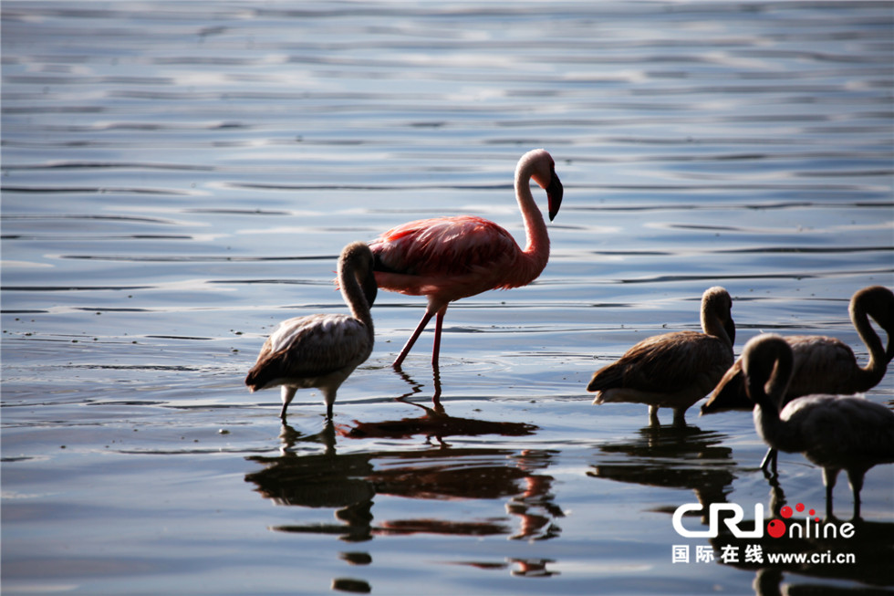 火烈鸟生活在咸水湖中,盐碱水质和赤道线上强烈的阳光使湖泊里生长着一种暗绿色的藻类,这是火烈鸟的主要食物。这种藻类中除含有大量蛋白质外,还含有一种特殊的叶红素。火烈鸟小的时候,是灰色的,之后随着身体摄取叶红素的增多,颜色也随之越变越红。 摄影:李玲