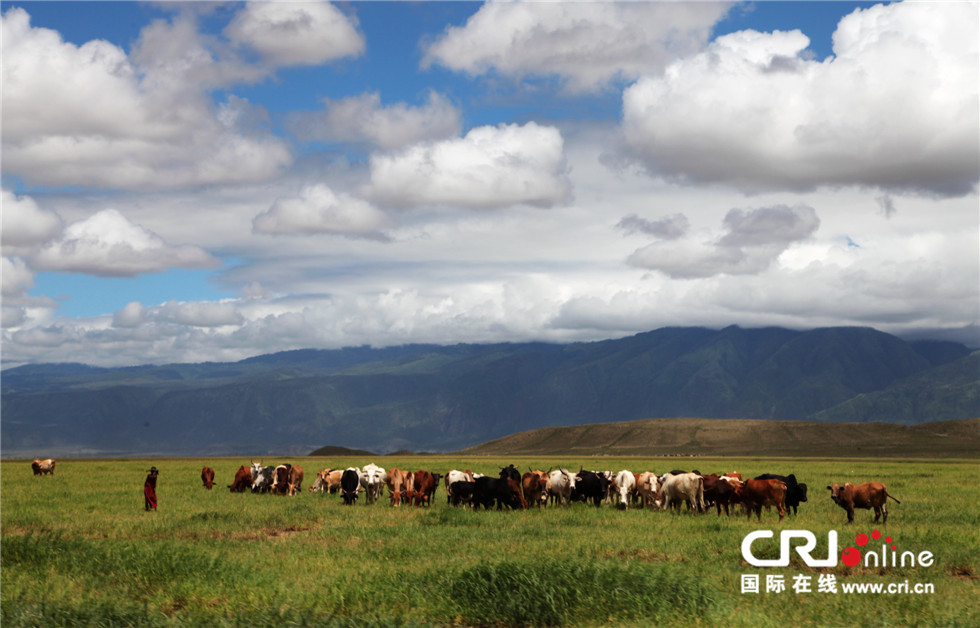 马赛人、家畜、野生动物、草原、散落的棵棵合欢,这是人与动物、自然最美最和谐的画面。 摄影:李玲