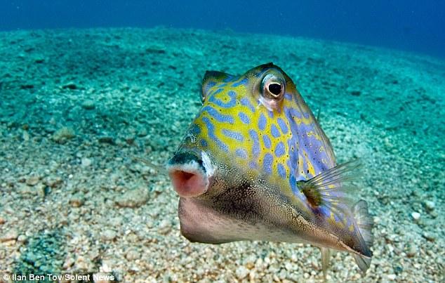 据《每日邮报》9月2日报道,在距离以色列不远处的红海附近,以色列一名潜水员惊喜地拍摄到一条15厘米长的硬鳞鱼。这个小东西游到潜水员的相机前嘟嘴摆姿势,而且它还很喜欢看它自己在相机镜头里的样子。(网页截图)