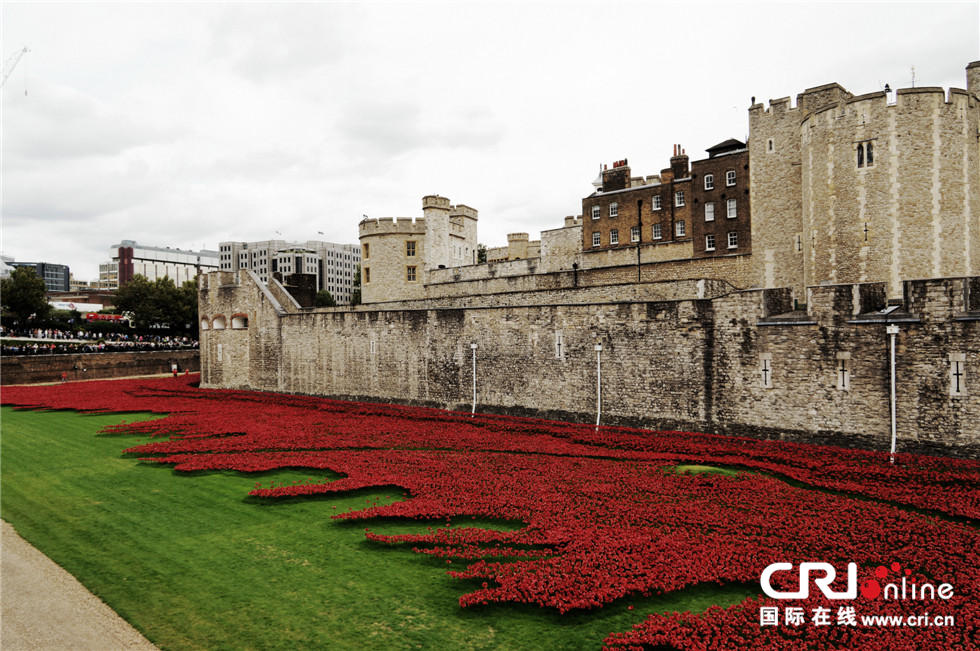 一战百年纪念:英国伦敦塔铺满陶瓷罂粟