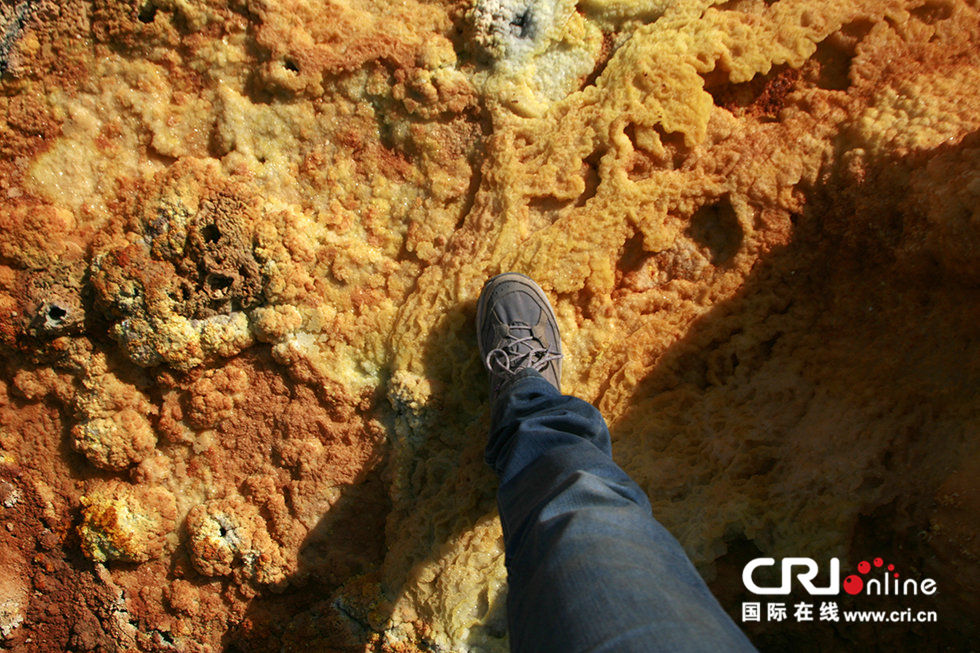 我们走在这些晶体上,每一步都很小心,很怕不慎踏入硫磺池中。眼前是风景,脚下是地狱。 摄影:李玲