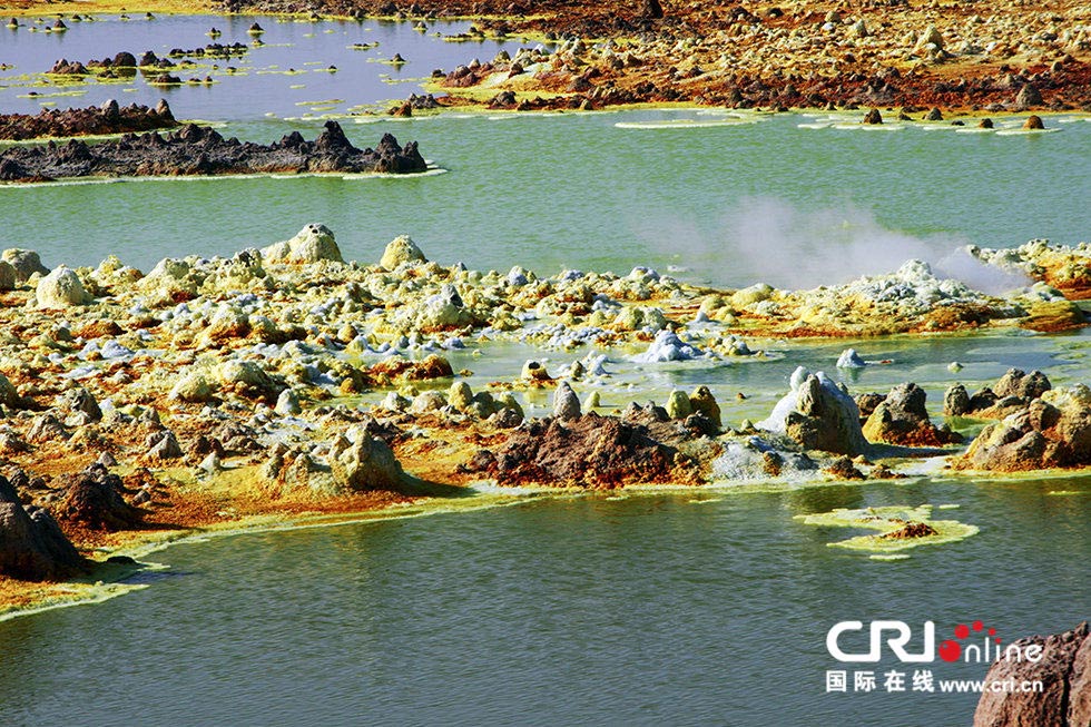 多彩的颜色来源于硫磺和其它氯化物和氧化物作用后形成的,由于色彩斑斓,加之周边荒凉,加之这里的高浓度酸性水含酸度达90%以上,这个美丽而又致命的地方,被人称为末日战场。 摄影:李玲