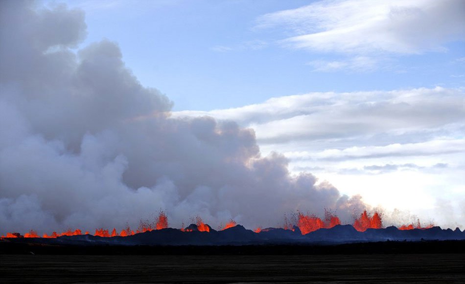 火山爆发后,喷涌的熔浆上升至空中30米,白色的蒸汽更是到达空中4800米的高处。
