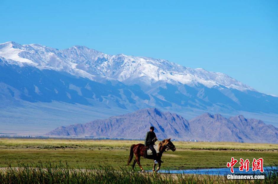 9月8日,新疆东部的巴里坤县山区下了今年入秋第一场雪,雪山壮美雄伟,皑皑雪山下,美丽的草原,纯净的湖水,倒映的雪山,牛羊成群,雪白的小羊,浓郁的民族风情,构成一副优美的画卷。吴红军 摄
