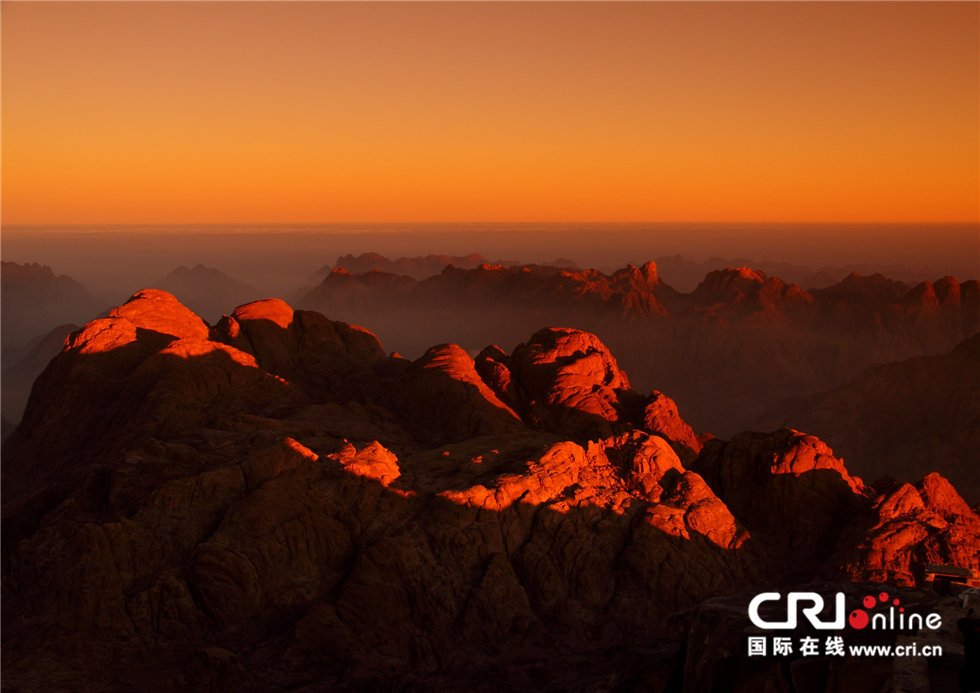 在大约3300年前,在古代埃及的拉美西斯二世时期,以色列人数百年来已经成为埃及人的奴隶,摩西横空出世。他以上帝赐予他的法力战胜了法老和佑护法老的神灵,赢得了以色列人的自由。于是他带领以色列人越过红海巨浪,到达西奈半岛,在西奈山接受十诫。西奈山成为了犹太教和基督教的圣地。每年在新年时分,来自于全世界各地的信徒们来到西奈山迎接西奈山的第一缕阳光。 摄影:王甲红