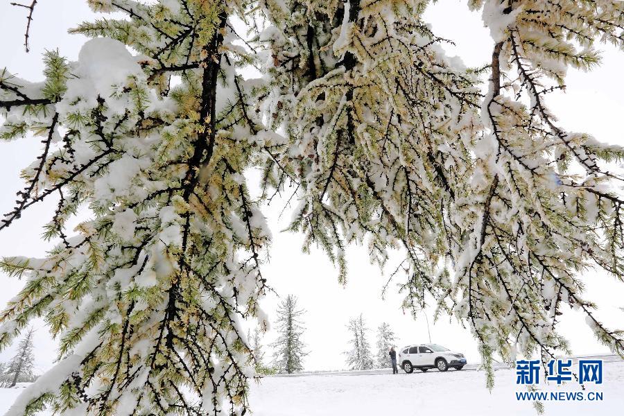 这是9月12日拍摄的新疆哈密雪景。受冷空气影响,新疆哈密北部出现了降温、降雪天气,沿天山一带银装素裹,成为秋日里独特的风景线。 新华社发(蔡增乐 摄)