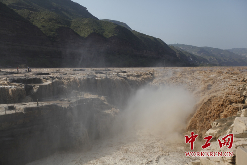 壶口瀑布东濒山西省临汾市吉县壶口镇,西临陕西省延安市宜川县壶口乡。北距山西太原387千米;南距陕西西安449千米。壶口瀑布是中国第二大瀑布,世界上最大的黄色瀑布。在水量大的夏季,壶口瀑布气势恢宏;而到了冬季,整个水面全部冰冻,结出罕见的巨大冰瀑。中工网记者韩靖摄