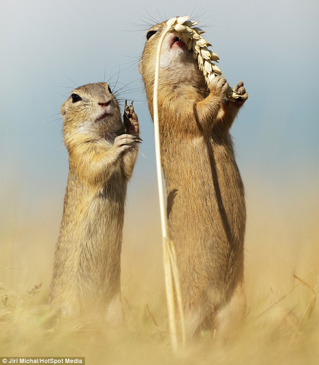 据《每日邮报》2014年10月9日报道,一组抓拍的两只松鼠抢夺食物的照片在网络走红,引众人围观。(网页截图)