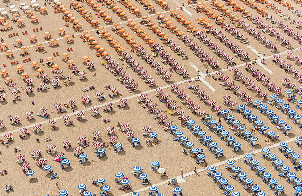 成排的太阳椅直线排列,留出很大空间。(网页截图)