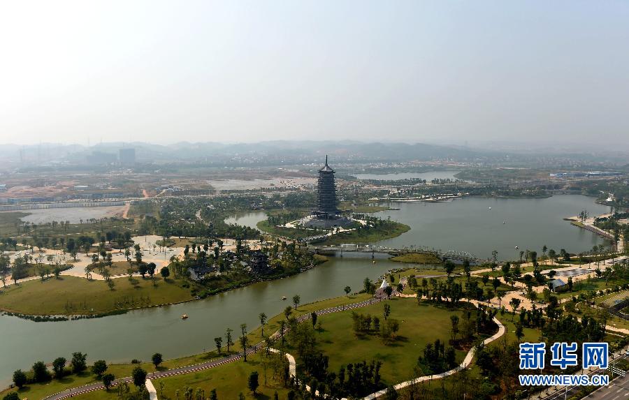 这是10月12日航拍的广西南宁市五象湖公园。当日,第45届世界体操锦标赛在广西南宁闭幕。 新华社记者陆波岸摄