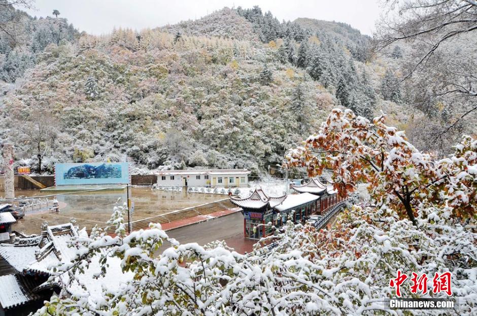 10月11日,地处甘肃中部的兰州市榆中县迎来今年首场降雪,“陇右第一名山”兴隆山景区红叶与雪景交织一起,给人以全新的视觉感受。正是观赏兴隆山红叶的好时节,雪花的降临为兴隆山增添了别样景致。高飞 摄