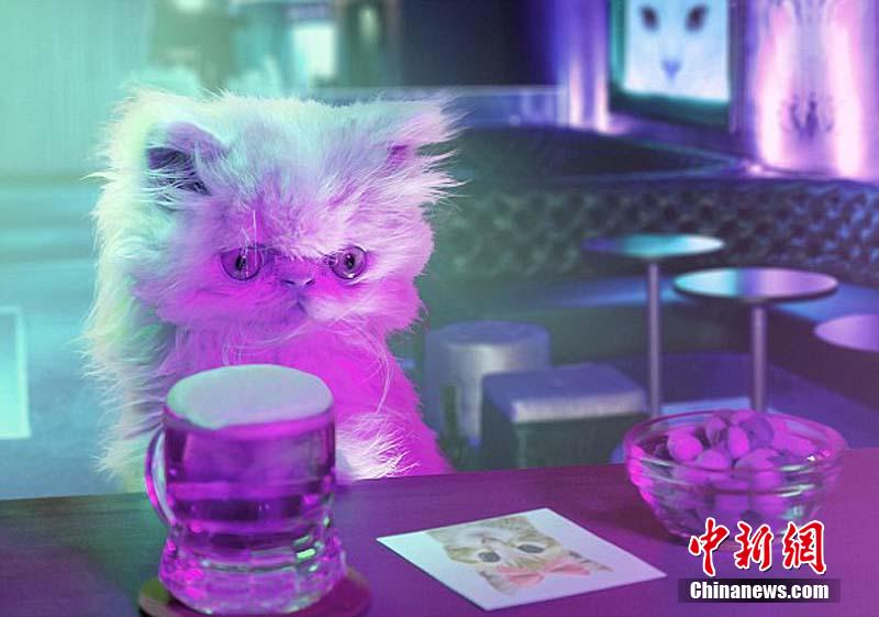 当地时间2014年10月14日报道(具体拍摄时间不详),38岁爱猫人士,前摄影师Jesus Segura拍摄了一组可爱宠物猫Napoleon滑稽和超现实图集,利用PS技术将Napoleon安插到这种场景中,比如;Napoleon在酒吧喝酒、被外星人抓走、被乌贼抓走、在洗澡时被刺杀等等。图片来源:东方IC 版权作品 请勿转载