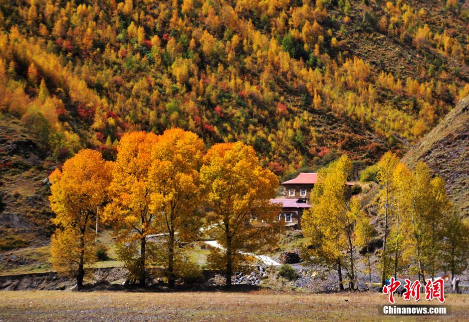 10月中旬,被誉为中国景观大道的川藏线迎来最美季节,湛蓝的天空下,金色的山林、碧绿的峡谷仿佛进入了梦幻的童话世界。中新社发 刘忠俊 摄