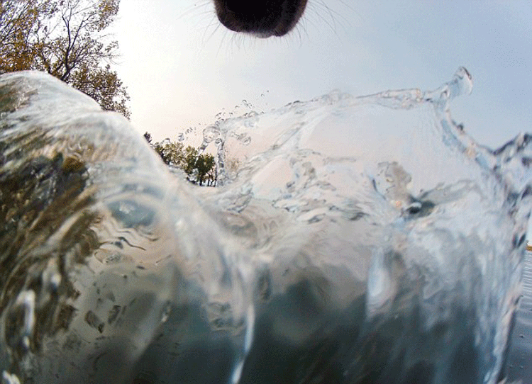 古力拍摄的照片中,照片上部几乎都有它可爱的胡子。比如这张照片中,古力正在河水飞溅的小河边徘徊。 (网页截图)