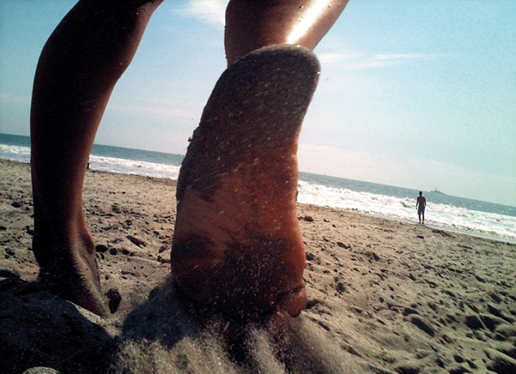 阿斯特罗拍摄的照片,它正跟在人类赤脚后面,似乎在追逐什么。 (网页截图)