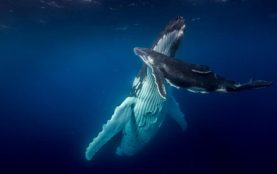 汤加Foa,47岁的Darren Rice上天下海拍摄太平洋内座头鲸生活景象。他利用一架无人机捕捉座头鲸母子相伴,雄性鲸鱼追逐雌性鲸鱼交配的场景。同时,5年前开始经营一个潜水机构的Darren Rice也潜入海底,从海底拍摄鲸鱼。来源:中国网
