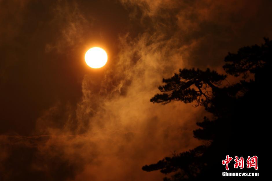 安徽黄山现日破云涛奇特景观