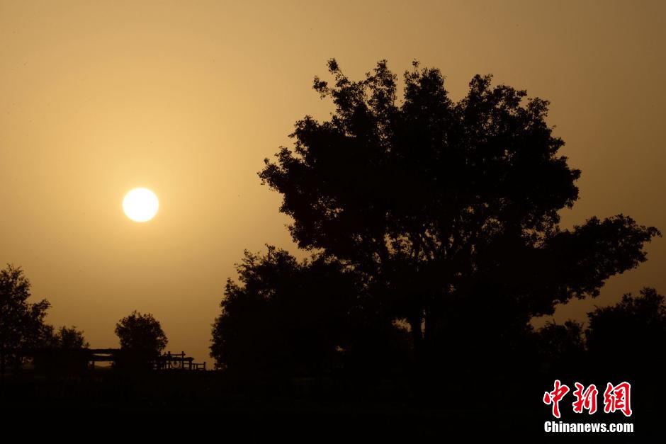 新疆塔里木盆地沙漠胡杨秋色斑斓美景诱人