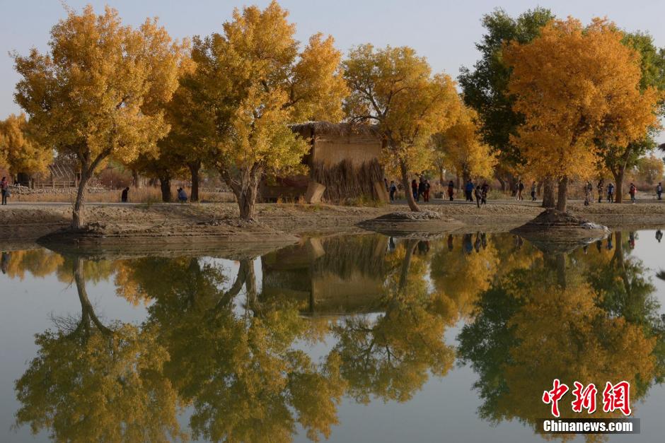 新疆塔里木盆地沙漠胡杨秋色斑斓美景诱人