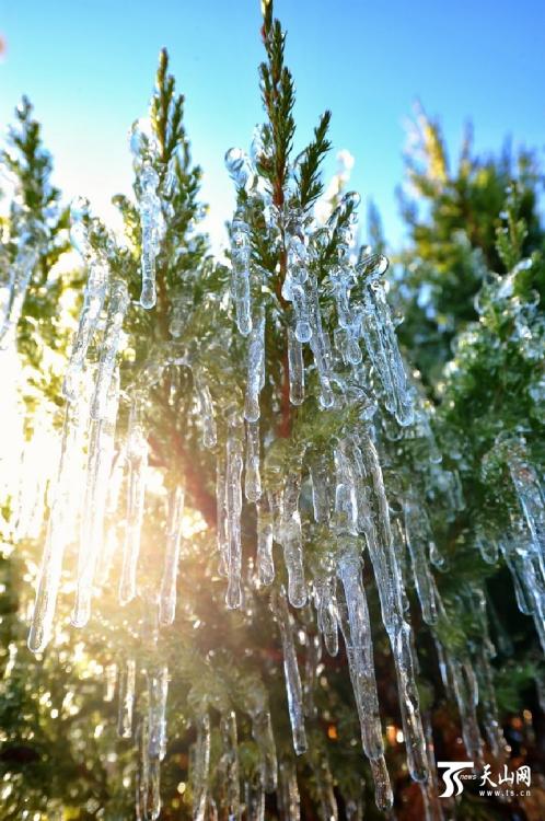 新疆哈密市秋日冰挂满枝头