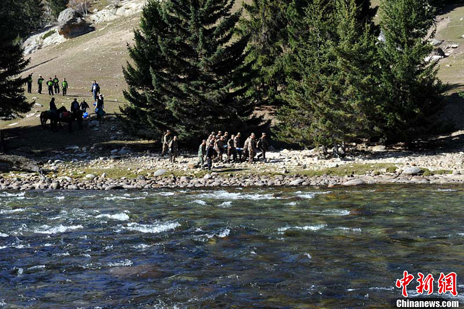 10月7日,“十一”长假最后一天,新疆富蕴县可可托海,国家5A级风景区仍然游人如织,游客数量仍然保持在一万人次左右的高位。11时许,有游客通过电话向执勤民警报警,称自己驾驶动力伞在景点航拍,起初飞行正常,但不久后飞行器出现故障,同伴及飞行器从空中坠落,掉在深山里,伤势严重,请求救援。富蕴县公安局组织30余警力,联合武装部、边防武警、医院等多个单位,进入山区展开联合搜救。经过四个小时的搜索,最终找到坠落的飞行器和两名乘员,两名乘员均有肢体骨折,并有轻度昏迷。经现场救护后,公安民警、武警官兵用担架将伤者从山里转运出来,医院派出救护车将伤员送往医院作进一步治疗。目前,伤者伤情稳定,无生命危险。万晓旭 摄