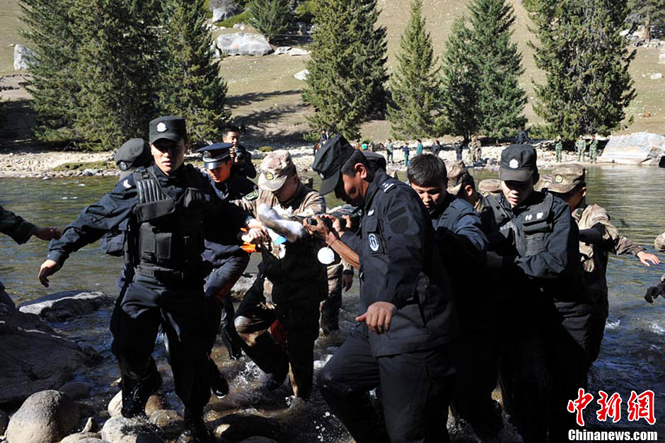 10月7日,“十一”长假最后一天,新疆富蕴县可可托海,国家5A级风景区仍然游人如织,游客数量仍然保持在一万人次左右的高位。11时许,有游客通过电话向执勤民警报警,称自己驾驶动力伞在景点航拍,起初飞行正常,但不久后飞行器出现故障,同伴及飞行器从空中坠落,掉在深山里,伤势严重,请求救援。富蕴县公安局组织30余警力,联合武装部、边防武警、医院等多个单位,进入山区展开联合搜救。经过四个小时的搜索,最终找到坠落的飞行器和两名乘员,两名乘员均有肢体骨折,并有轻度昏迷。经现场救护后,公安民警、武警官兵用担架将伤者从山里转运出来,医院派出救护车将伤员送往医院作进一步治疗。目前,伤者伤情稳定,无生命危险。万晓旭 摄