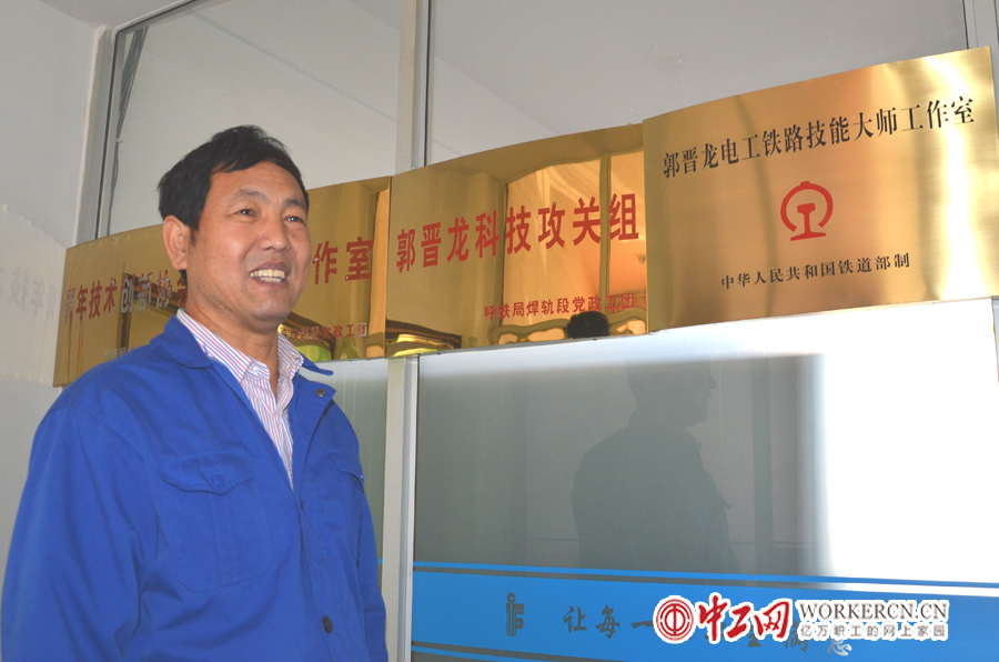 郭晋龙,2010年全国劳模、呼和浩特铁路局焊轨段电器钳工技师。图为郭晋龙和他的电工技能大师工作室。 (中工网记者 笑语摄)