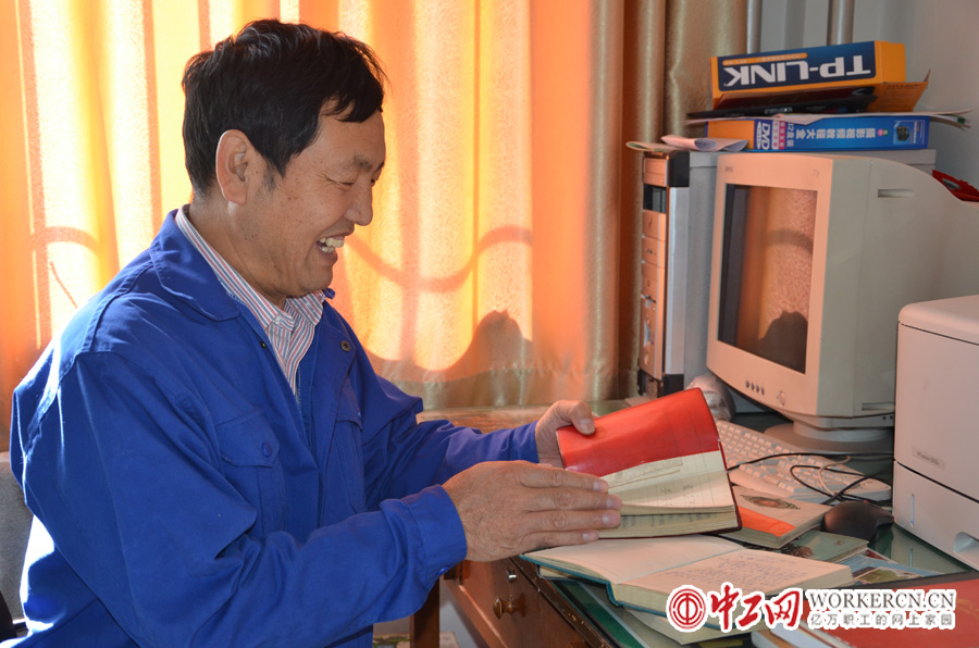 在郭晋龙的工作室,郭师傅翻出当年学习电路知识、解决设备难题时记下的一本又一本笔记,回想当年,不禁莞尔。 (中工网记者 笑语摄)